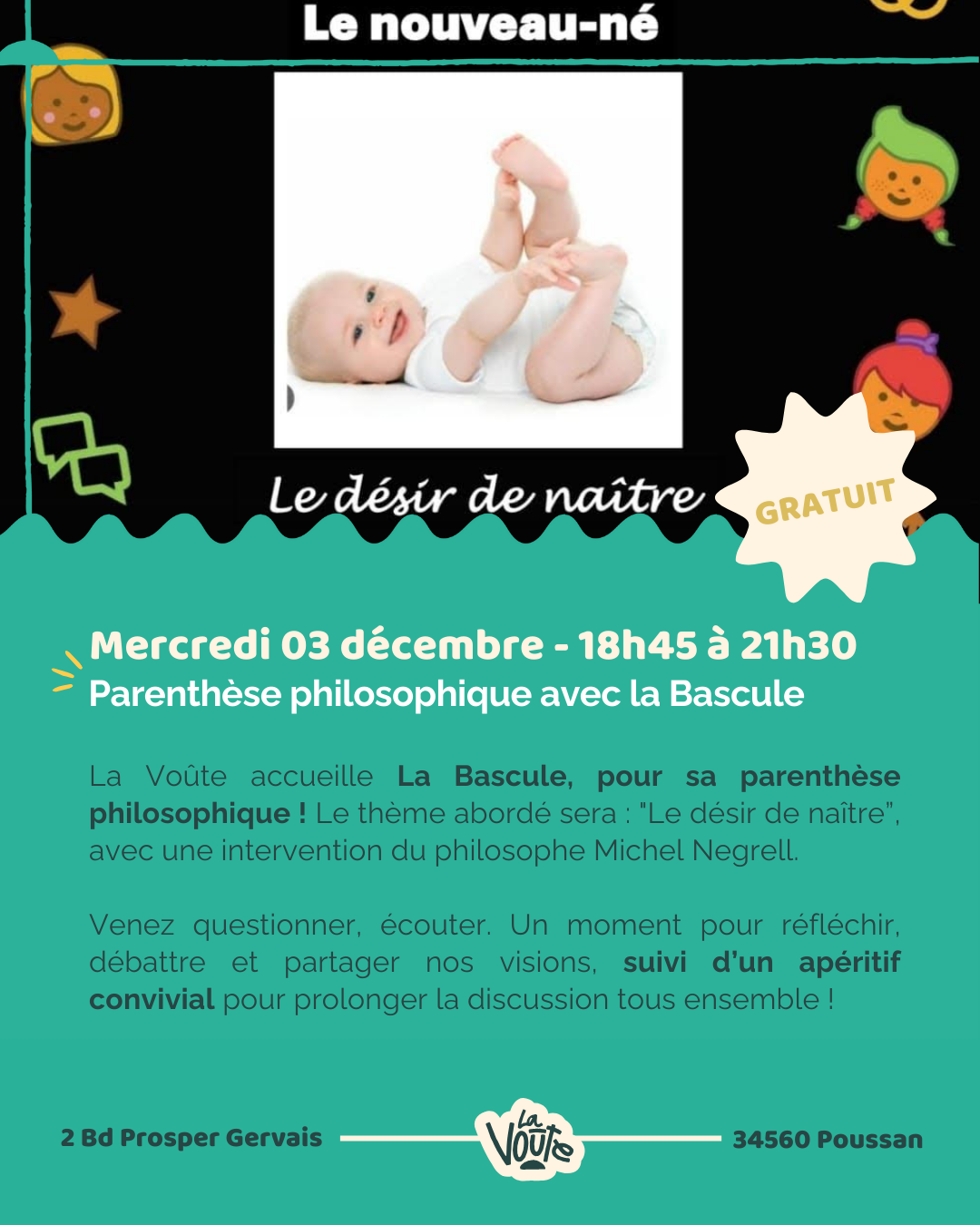 La Voûte accueille La Bascule, pour sa parenthèse philosophique ! Le thème abordé sera : "Le désir de naître”, avec […]