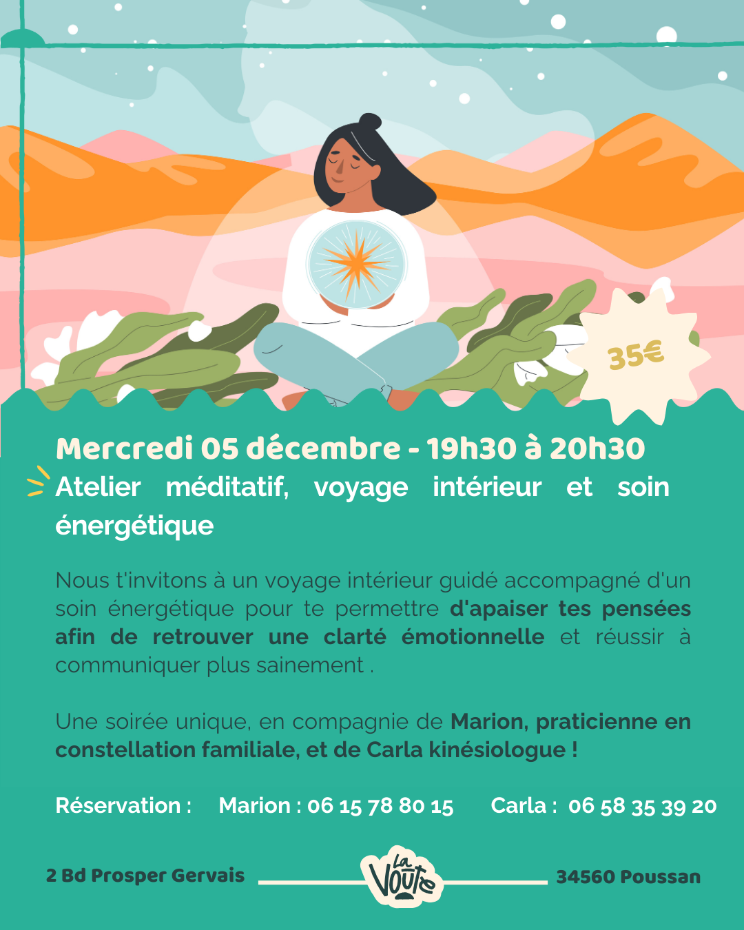Nous t'invitons à un voyage intérieur guidé accompagné d'un soin énergétique pour te permettre d'apaiser tes pensées afin de retrouver […]