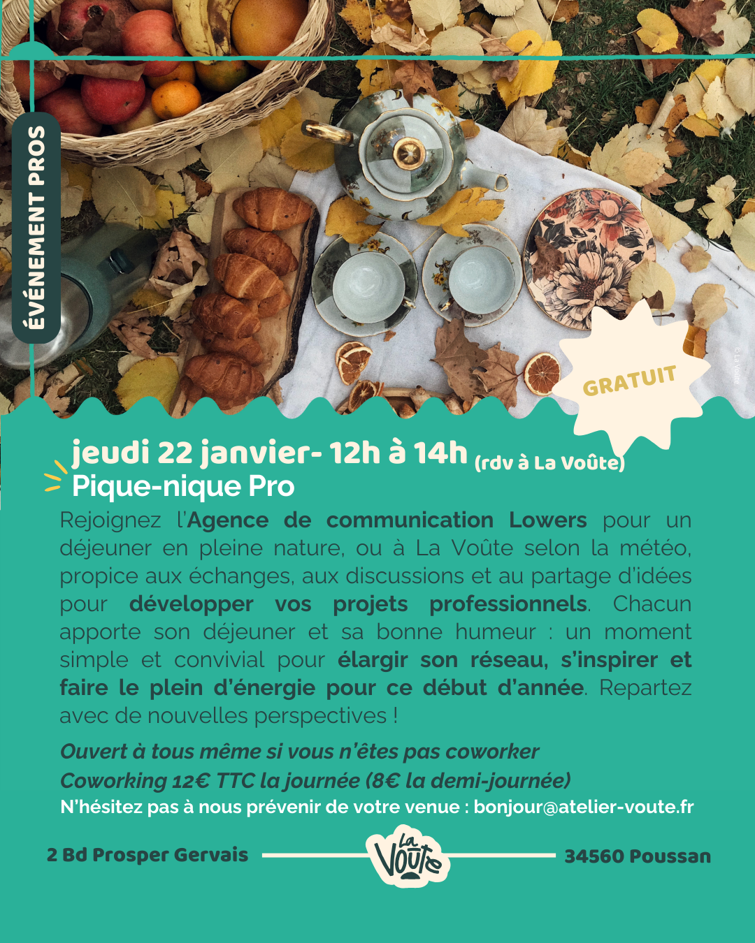 jeudi 22 janvier- 12h à 14h Rdv à La Voûte Rejoignez l’Agence de communication Lowers pour un déjeuner en pleine […]