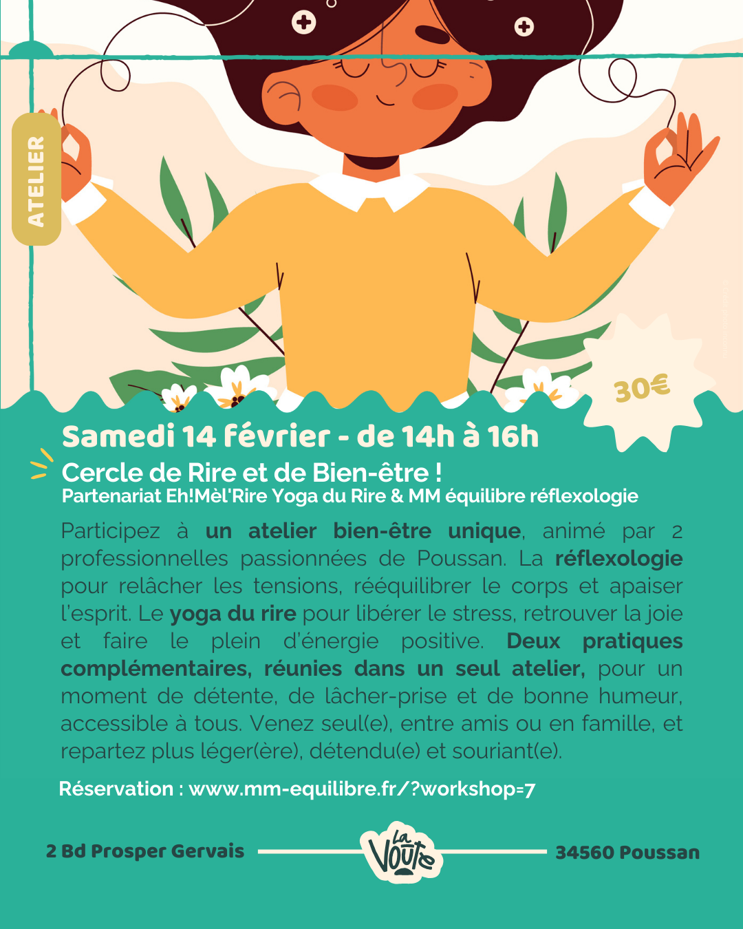 Samedi 14 février de 14h à 16h Partenariat Eh!Mèl'Rire Yoga du Rire & MM équilibre réflexologie Participez à un atelier […]